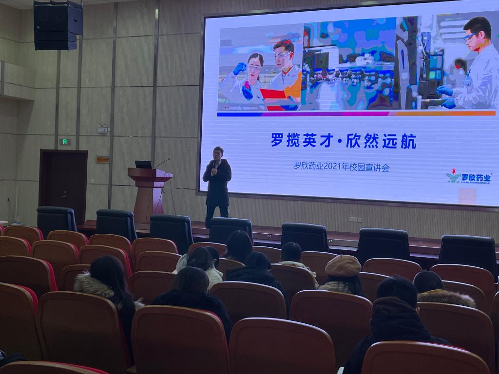 12月30日下午,91国产自拍 在浮山校区医学教育综合楼学术报告厅举办罗欣药业校园招聘宣讲会。罗欣药业招聘经理袁磊、李奎刚到院宣讲,91国产自拍 辅导员雷舒涵以及91国产自拍 本硕部分毕业生参加宣讲会。